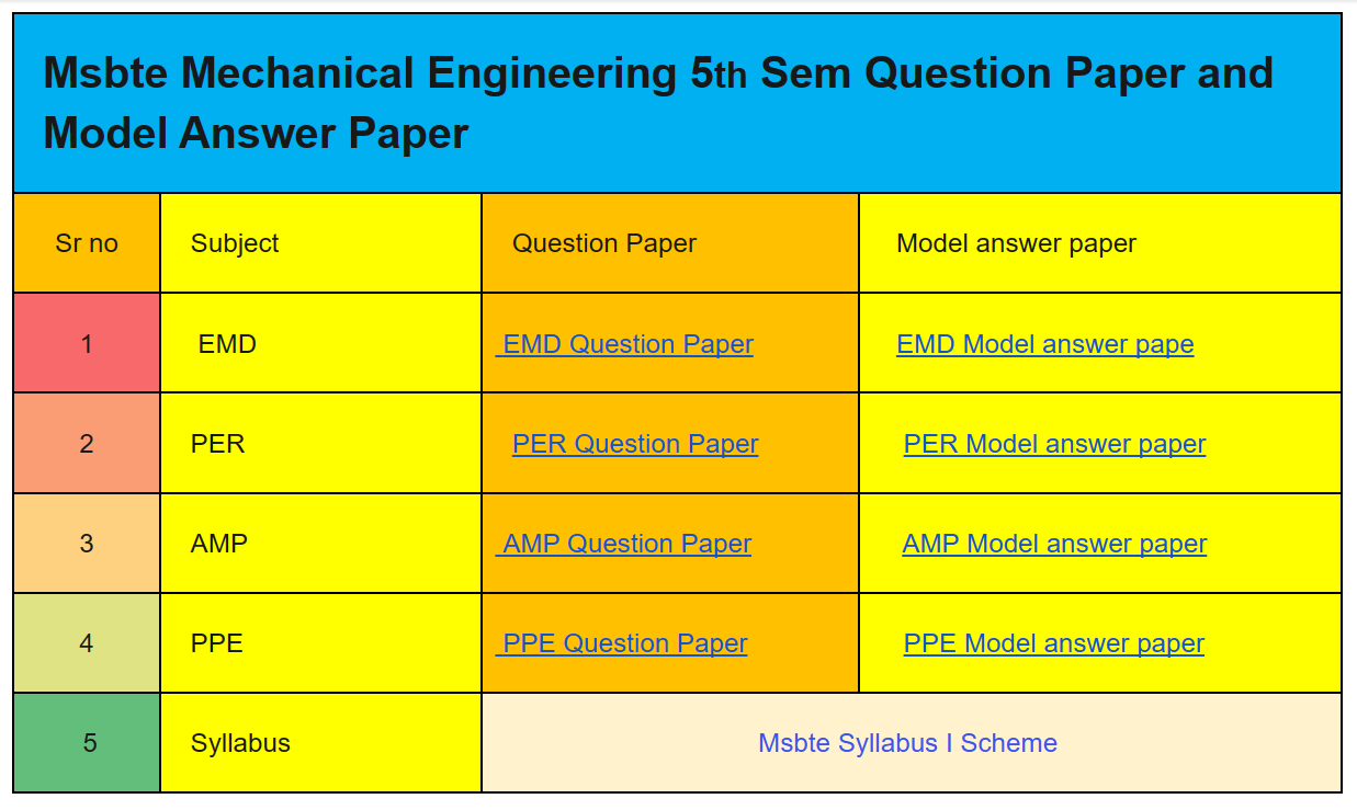 Sr no | Subject | Question Paper | Model answer paper |